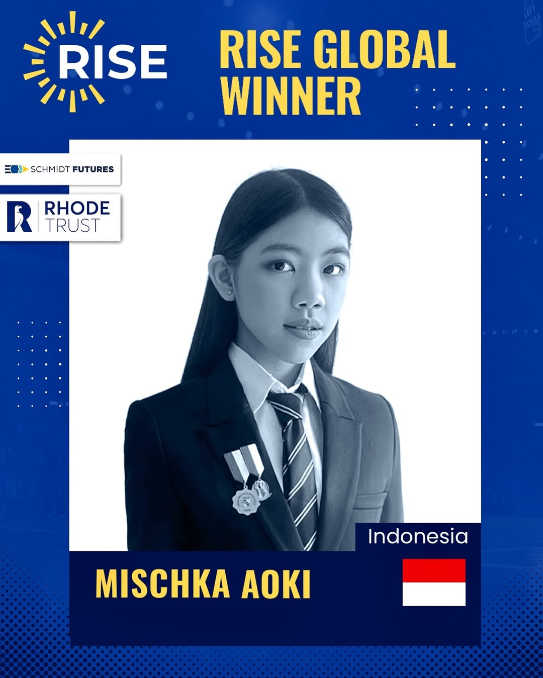 Tahun 2024 menjadi salah satu puncak pencapaiannya. Mischka Keia Aoki berhasil memenangkan RISE for the World 2024, mengungguli lebih dari 13.000 peserta dari 49 negara, sebuah prestasi internasional yang sangat kompetitif dengan tingkat penerimaan 0,7 persen./Sumber foto: instagram.com/mischkakeiaaoki